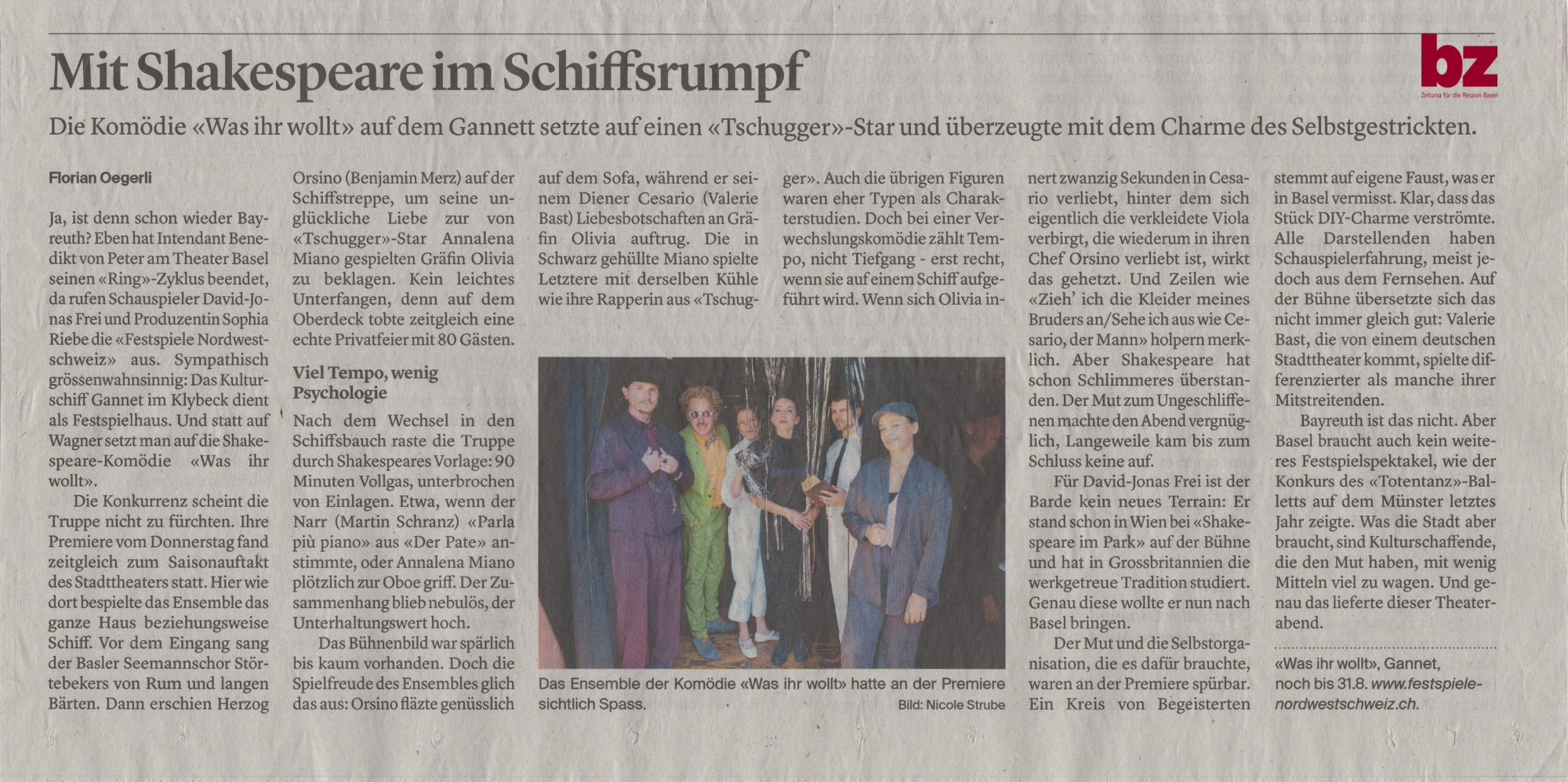 Die Vorstellungen von “Was Ihr Wollt” bei den Festspielen Nordwestschweiz in Basel waren ein voller Erfolg sowohl beim Publikum als auch der Presse.